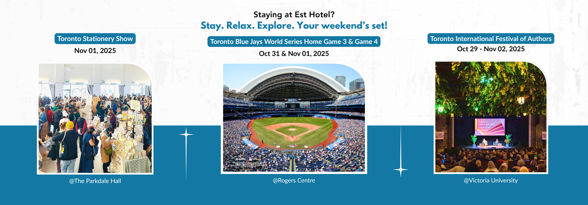 Toronto is wrapping up the year with an exciting blend of creativity, culture, and championship energy. Whether you’re a sports enthusiast, an art lover, or a bookworm, November in Toronto has something for everyone. And if you’re visiting the city for these events, EST Hotel near Toronto Pearson Airport is your ideal home base — modern, convenient, and budget-friendly.